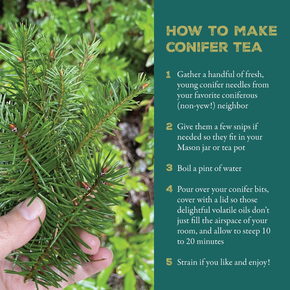 - Conifer Medicine — from aromatic body oils to teas and honeys, learn to make medicine with conifers